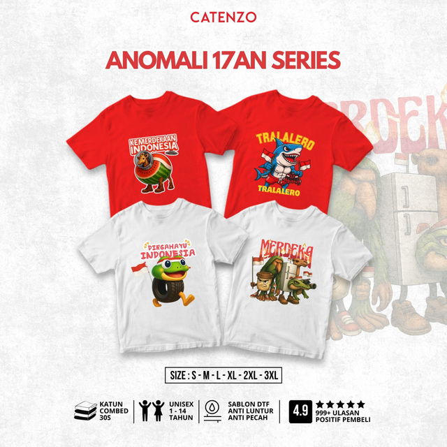 CATENZO JUNIOR - Kaos Anak Lengan Pendek Kaos Anak Anomali HUT RI Series Unisex